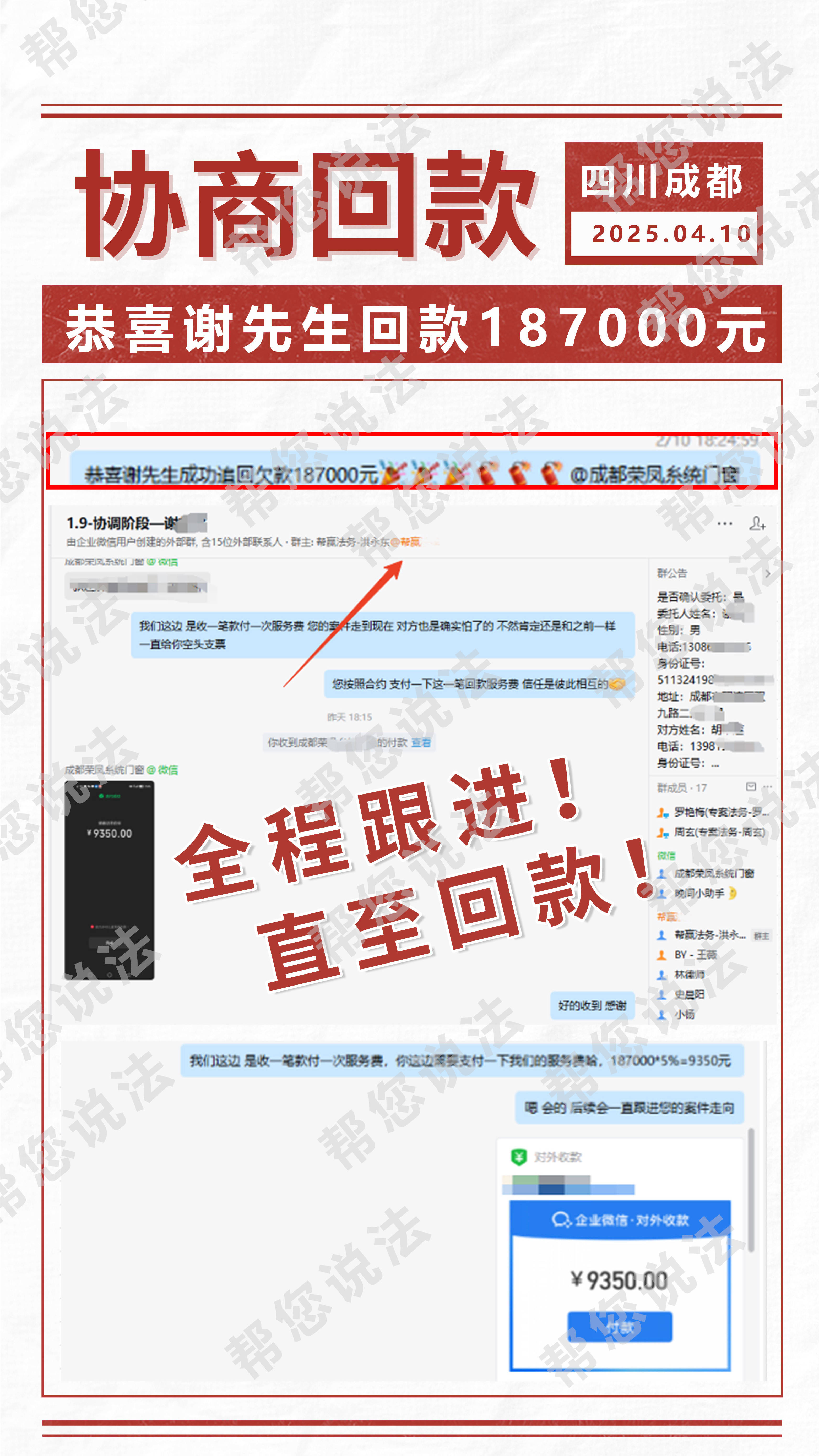 在服务过程中,团队始终紧扣客户的实际需求,提供从案情分析、证据整理到诉讼文书撰写的一站式法务支持,而且每个步骤都有资深律师全程参与指导把关,旨在通过专业、快捷的诉讼辅助服务,为债务纠纷的妥善解决筑牢根基。以下是帮赢说法的部分经典成功案例展示。