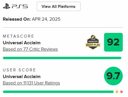 《光与影:33号远征队》现已发售了一段时间,游戏在M站玩家评分高达9.7分,共计11131名玩家给出评价。《光与影:33号远征队》也成为坐拥有史以来最高Metacritic用户评分的游戏。高达97%的玩家给出好评,中差评分别仅占2%。
