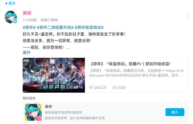 UE5开放世界游戏《异环》在去年结束了首测后,今日官方账号发布了「收容测试」招募PV。